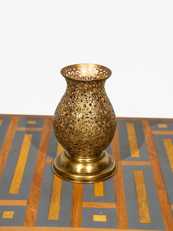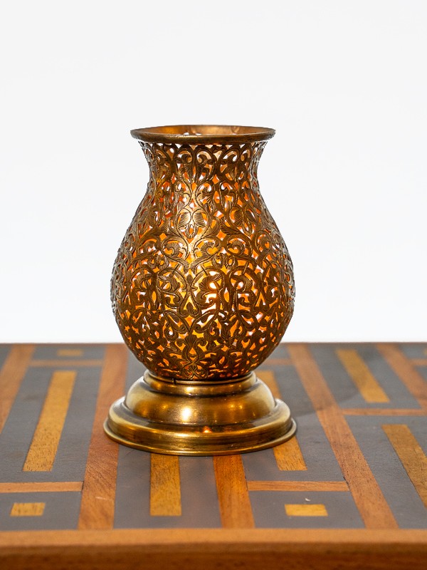 This brass Holder embodies the exquisite craftsmanship of Marrakech Palace artisans. Hand-carved with precision, its lattice design is not just intricate, it's a piece of history shaped by hands that know the soul of metalwork.