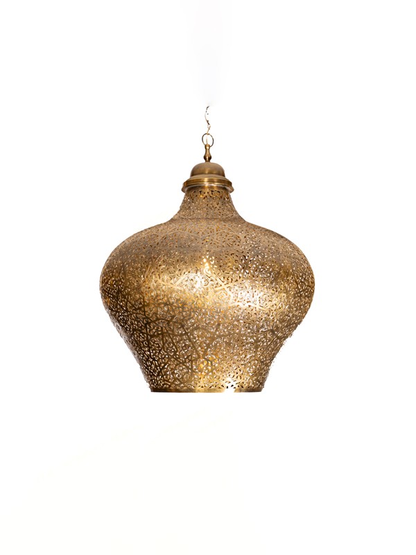 The Salak Hanging Lamp features an exquisite brass design, perfect for adding a touch of classic Moroccan elegance to any space.