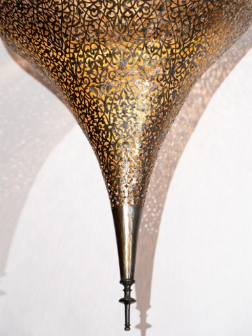 The Amani Hanging Lamp features a detailed filigree design, adding a touch of Moroccan elegance to any space.