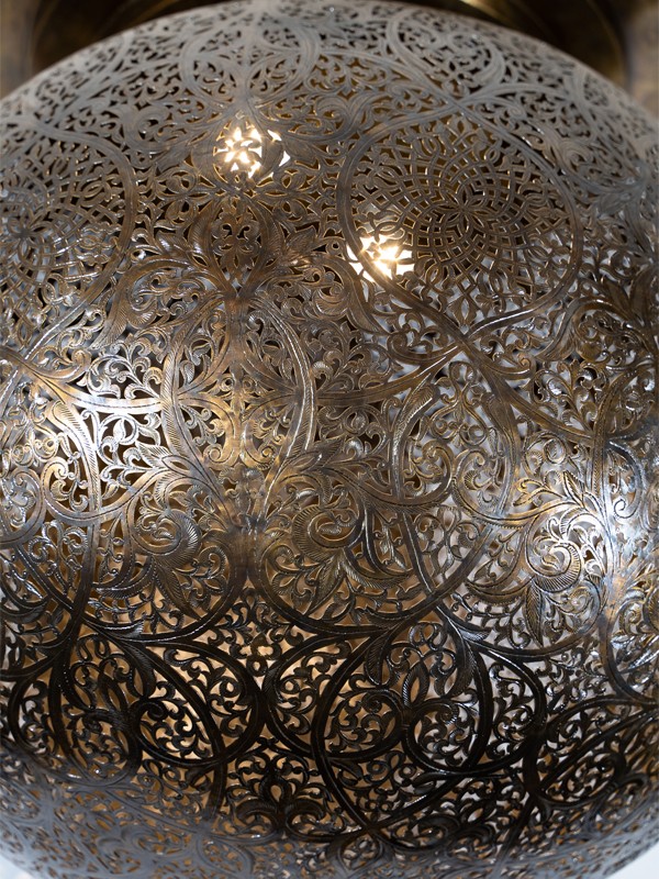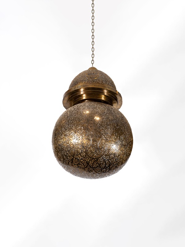 The Budha Hanging Lamp features an exquisite brass design, perfect for adding a touch of classic Moroccan elegance to any space.