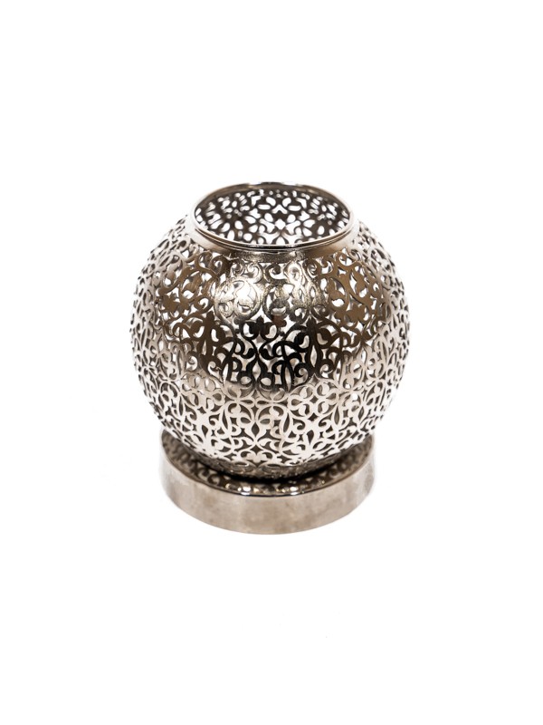 The Sienna Candle Holder is a showcase of Moroccan craftsmanship, its white copper body carved with an ornate filigree pattern that adds an air of sophistication to your decor.