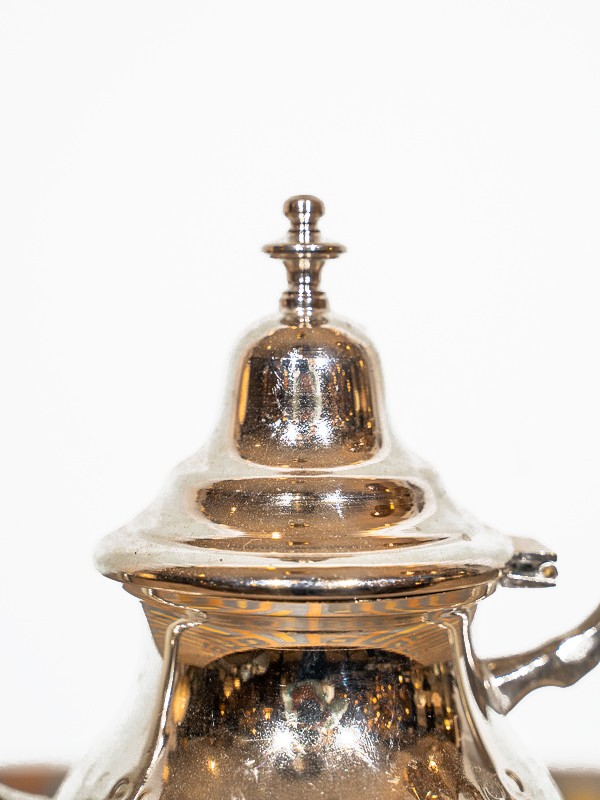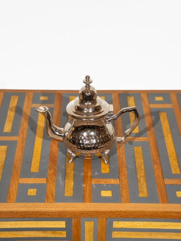 This brass teapot is a nod to centuries-old Moroccan tea traditions, meticulously crafted to bring both history and function to your table. Its polished surface and hammered details reflect a timeless beauty that complements the ritual of tea.