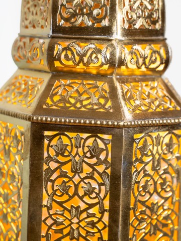 Expertly handcrafted, this electric lantern by Marrakech Palace echoes the rich cultural heritage of Moroccan design. The intricate lattice pattern carved into high-quality brass casts an enchanting play of light and shadow, creating an atmosphere of mystical allure in your home.