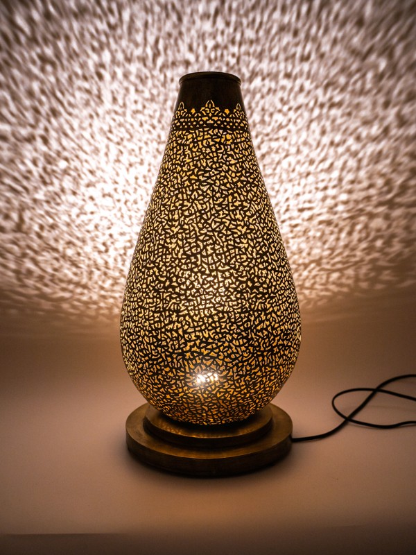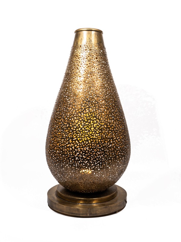 Our Teardrop Brass Table Lamp is a symphony of artistry and light, designed to illuminate your space with a warm, golden glow. Each lamp is a testament to the heritage of Moroccan design, meticulously crafted to bring a touch of palatial splendor to your home.