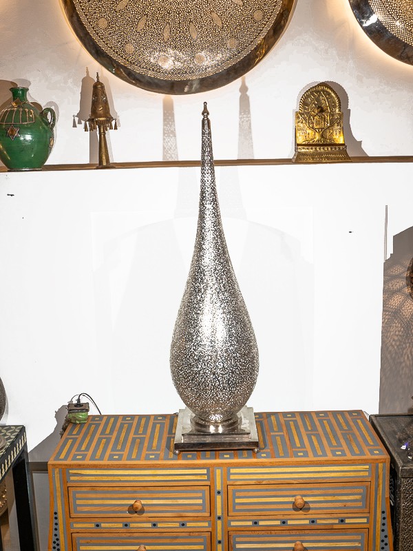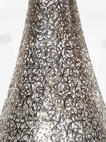 This handcrafted pewter lantern from Marrakech Palace is an embodiment of cultural heritage and artisanal skill. Its design is inspired by the traditional Moroccan artistry, providing not just light but an ambiance of historical elegance.