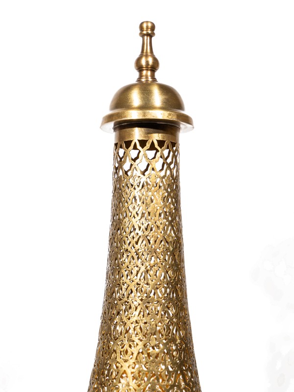 The Nura brass table lamp reflects Marrakech Palace’s homage to traditional design and expert craftsmanship. It offers a source of gentle light that brings an aura of warmth and classic elegance to any room.