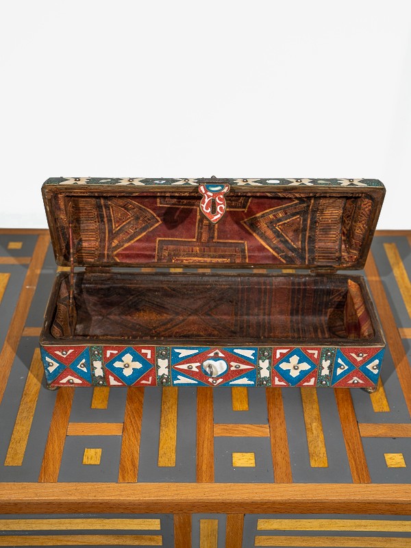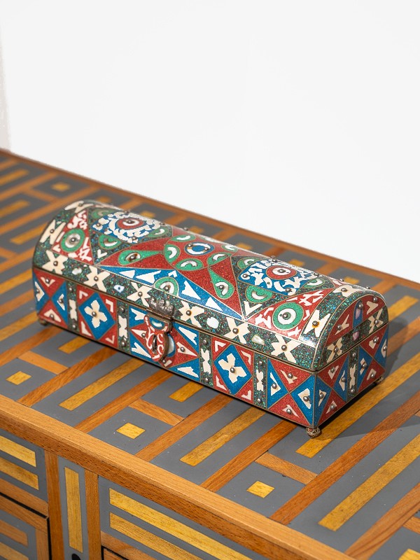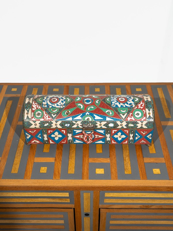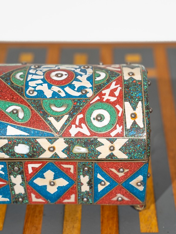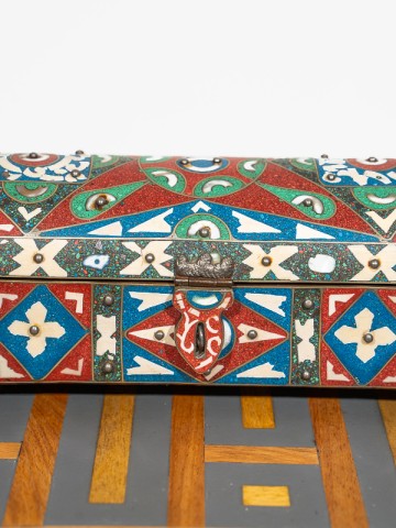 Whether displayed on a mantelpiece or adorning a dressing table, this Enamel and Bone Inlay Box is sure to become a cherished heirloom, a tangible connection to the enchanting world of Arabian nights.