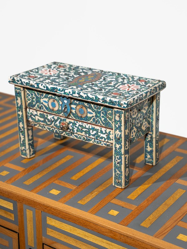 Bearing motifs and arabesques reminiscent of an ancient Moroccan palace, this mini-chest transcends its utility to become a centerpiece that captures the imagination and adorns your space with the allure of "1001 Nights".
