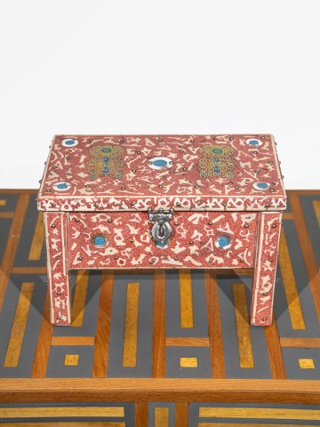 Este mini cofre es una celebración de la saga "Las mil y una noches", con una incrustación de rubíes intrincada y un trabajo de filigrana en metal que evoca los legendarios cuentos de las noches árabes y la realeza marroquí.