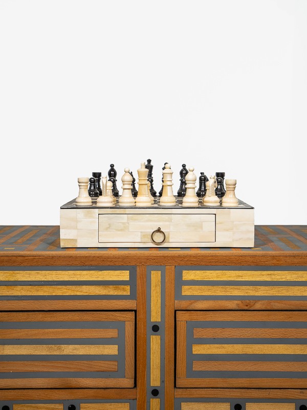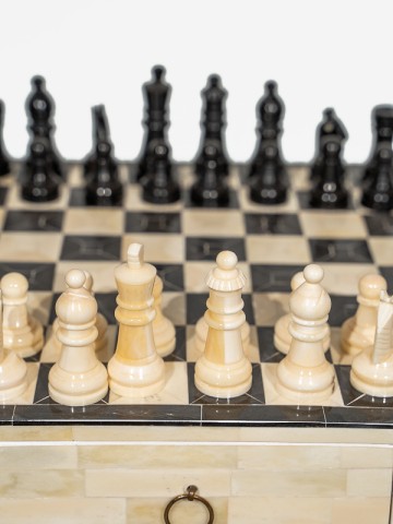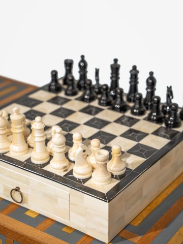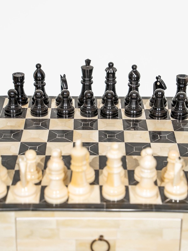 Elaborado para o conhecedor de jogos clássicos, este conjunto de xadrez combina jogo tradicional com design luxuoso. As peças naturais de osso e o mármore rico chamam a atenção, convidando os jogadores para uma batalha cerebral de inteligência.