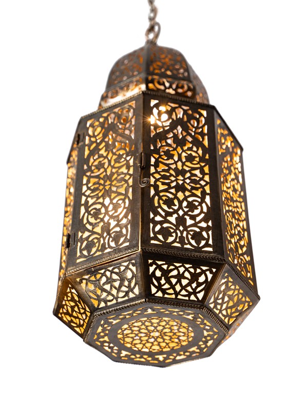 La linterna Zara presenta un diseño marroquí clásico con intrincados patrones de latón, aportando un toque de elegancia y riqueza cultural a cualquier espacio.