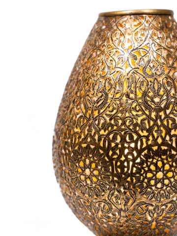 Celebre el rico patrimonio marroquí con nuestra lámpara de mesa ovalada de latón, una encarnación de la elegancia y una cálida ambientación en una sola pieza artística.