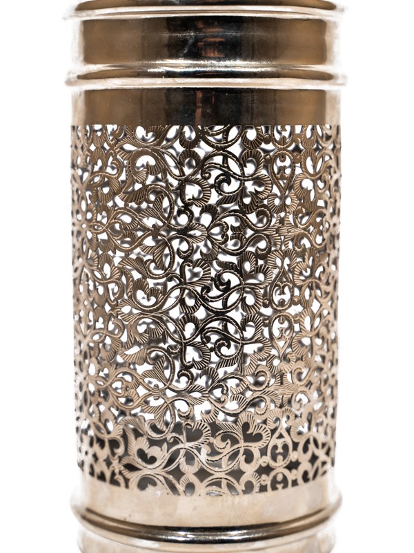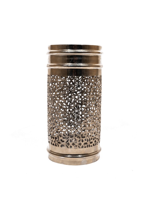Elaborado con meticulosa atención al detalle, este candelabro es un testimonio de la tradición centenaria de la herrería de estaño, mostrando las habilidades inigualables de los artesanos de Marrakech Palace.