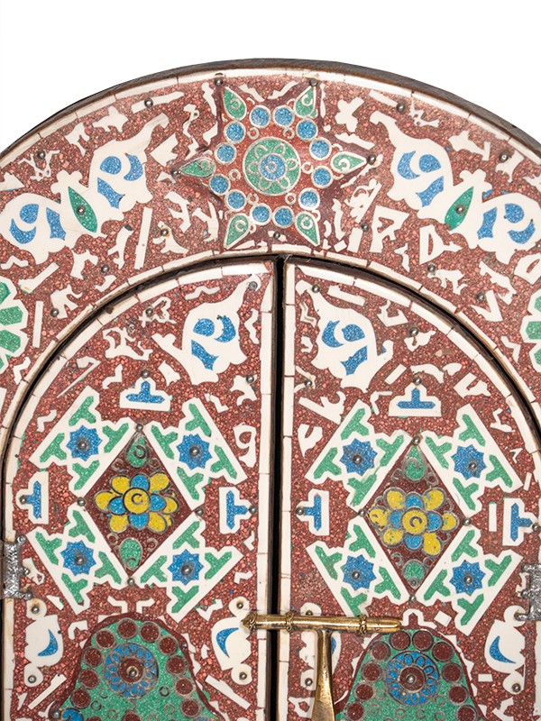 Le motif détaillé de l'incrustation du miroir met en valeur l'art et le savoir-faire des artisans marocains, créant une pièce unique et belle.