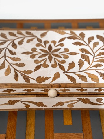 Chaque boîte en cèdre et incrustation d'os du Palais de Marrakech est plus qu'un simple contenant ; c'est un héritage qui porte les murmures de l'esprit artisanal de Marrakech.