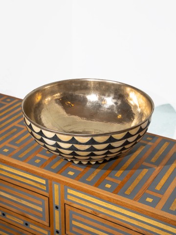 Ce magnifique lavabo de salle de bain marie les techniques traditionnelles d'incrustation d'os avec une construction moderne en résine, offrant une pièce à la fois durable et frappante. Chaque lavabo est fabriqué à la main par des artisans qualifiés, garantissant que chaque pièce est unique.