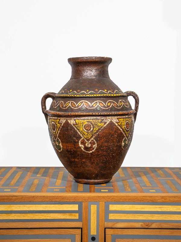 Ce pot en céramique, avec sa forme robuste et sa finition aux tons terreux, apporte la simplicité et la chaleur de l'artisanat rural dans votre maison. Idéal pour ceux qui apprécient la beauté de la poterie artisanale.