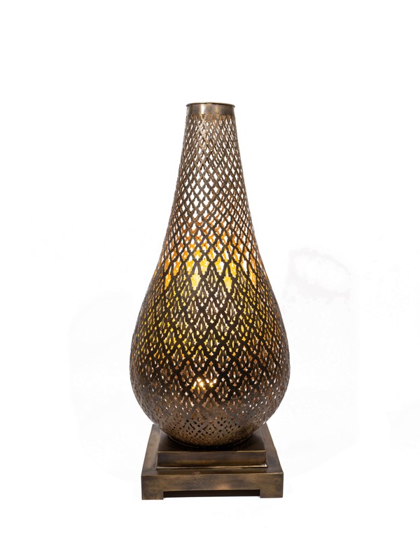 Notre lampe de table classique en filigrane de laiton est conçue pour diffuser un motif lumineux chaleureux et complexe. Un mélange de design traditionnel et d'artisanat moderne, c'est l'ajout idéal à tout intérieur de luxe.
