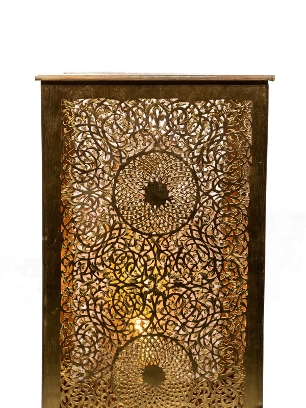 La lampe de table en laiton Majestic Radiance incarne l'opulence et le goût raffiné. Sa lumière rayonnante traverse des motifs en laiton complexes, créant un jeu de lumière et d'ombre qui imprègne n'importe quelle pièce d'une ambiance majestueuse.