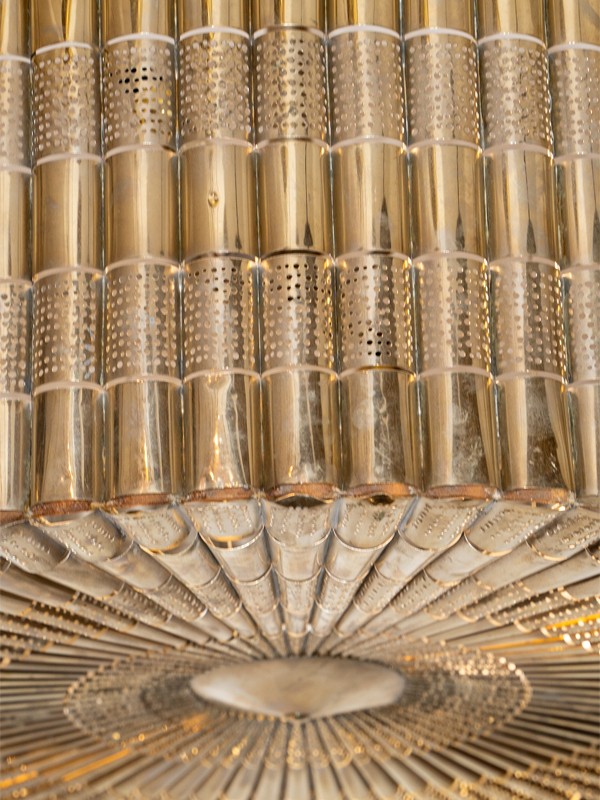 Chaque étage est fabriqué avec précision, présentant une texture complexe en cuivre blanc qui améliore l'attrait visuel et la luminosité générale du lustre.