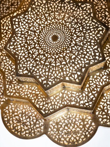 La lampe de plafond Zahara présente un design marocain traditionnel avec des motifs en laiton complexes, ajoutant une touche d'élégance et de sophistication à tout intérieur.