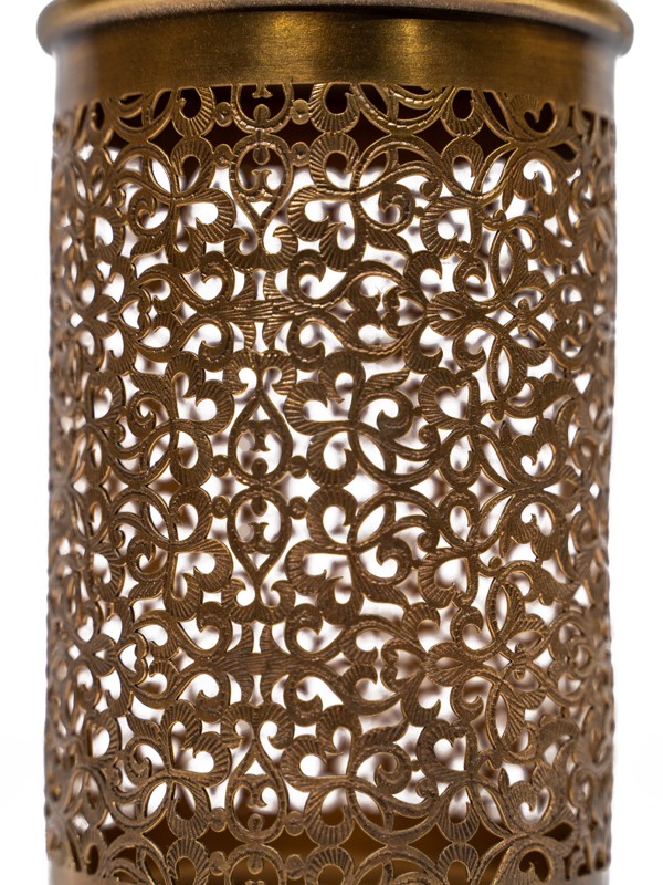 La lampe de table en laiton cylindrique classique est un emblème de goût raffiné. Sa forme cylindrique élégante et ses motifs en filigrane apportent une touche de sophistication à votre décor, se fondant harmonieusement avec différents styles intérieurs.