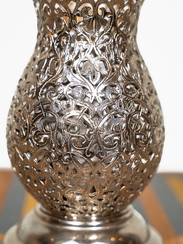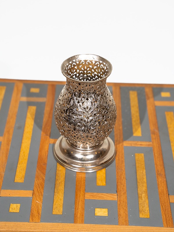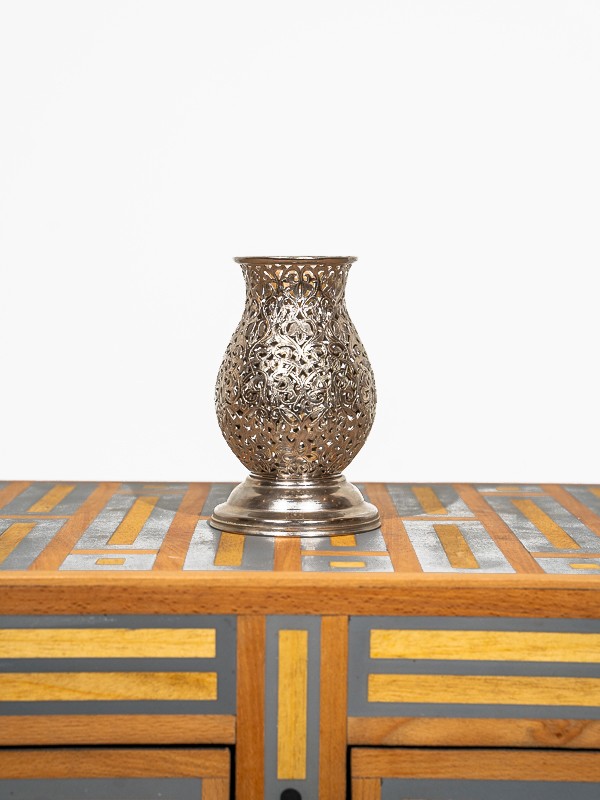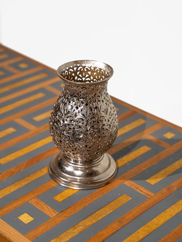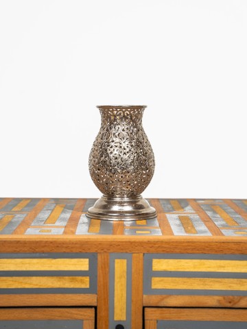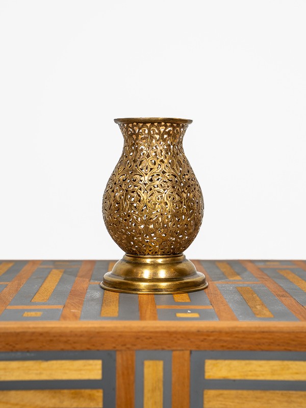 Ce porte-laiton incarne le savoir-faire exquis des artisans du Palais de Marrakech. Sculpté à la main avec précision, son design en treillis n'est pas seulement complexe, c'est un morceau d'histoire façonné par des mains qui connaissent l'âme du travail du métal.