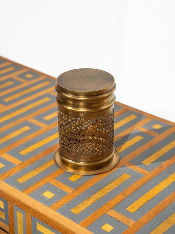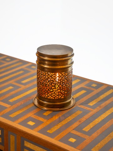 Le porte-bougie Auréate du Palais de Marrakech est une vitrine de design et d'artisanat magistraux. Le laiton, réputé pour sa durabilité et sa beauté classique, est façonné en un porte-bougie qui illumine non seulement votre espace mais sert également de pièce maîtresse.