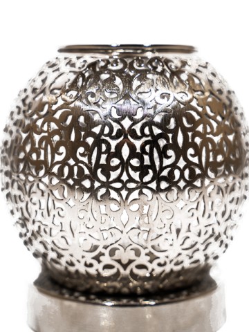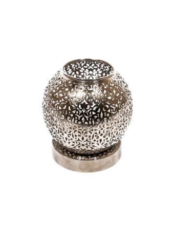 O Suporte para Velas Sienna é um exemplo da arte marroquina, seu corpo de cobre branco esculpido com um intrincado padrão de filigrana que adiciona uma sofisticação ao seu décor.