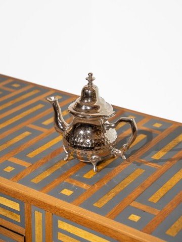 Cada chaleira é moldada e decorada à mão, dando-lhe um toque distinto que apenas as técnicas tradicionais podem alcançar. Os padrões detalhados e a construção robusta mostram a habilidade e dedicação de nossos artesãos marroquinos.