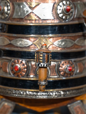 Este dispensador de água intemporal, com seu registro funcional, evoca a sensação de uma época anterior. Projetado não apenas para resfriar, mas também para servir água, agora serve como uma peça decorativa fascinante.