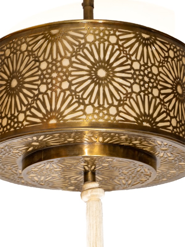 Feita à mão por artesãos especializados no Marrocos, a luminária reflete um compromisso com o artesanato tradicional combinado com sensibilidades de design moderno.
