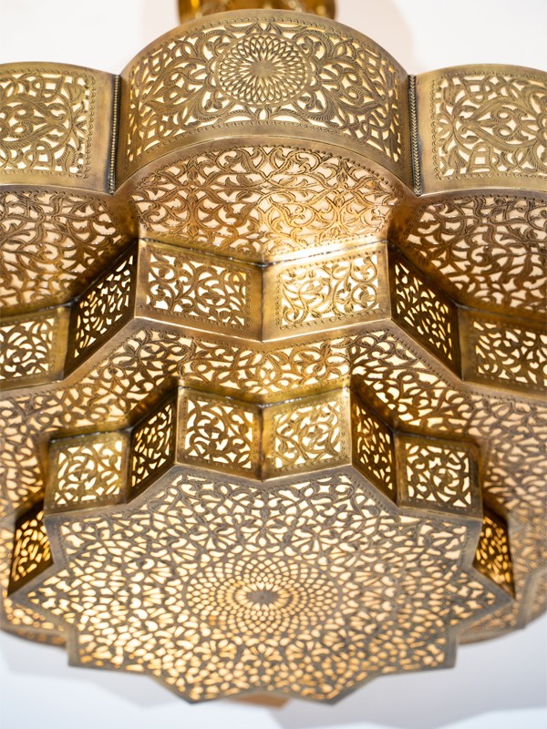 A Luminária de Teto Zahara apresenta um design marroquino tradicional com padrões intrincados de latão, adicionando um toque de elegância e sofisticação a qualquer interior.