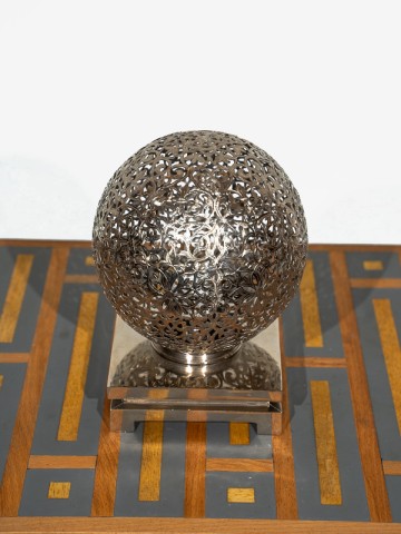 Traga um elemento personalizado para a sua decoração com a esfera de estanho do Palácio de Marraquexe. Adaptada ao seu gosto, ela ilumina o seu espaço com uma luz suave e padronizada que reflete o seu estilo individual.