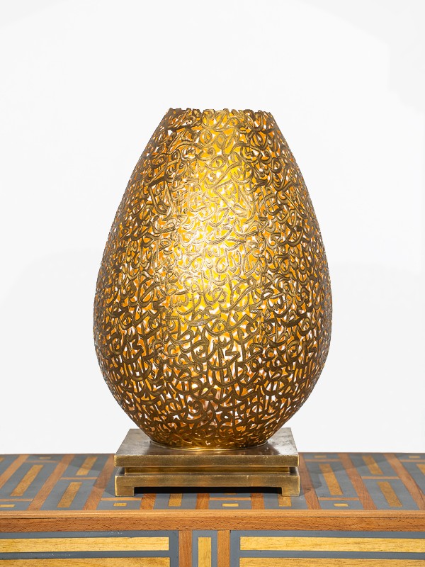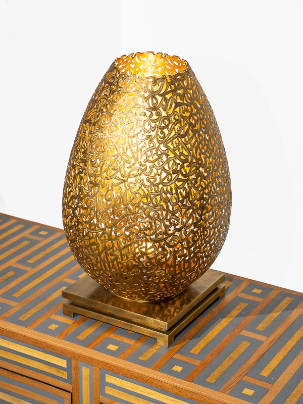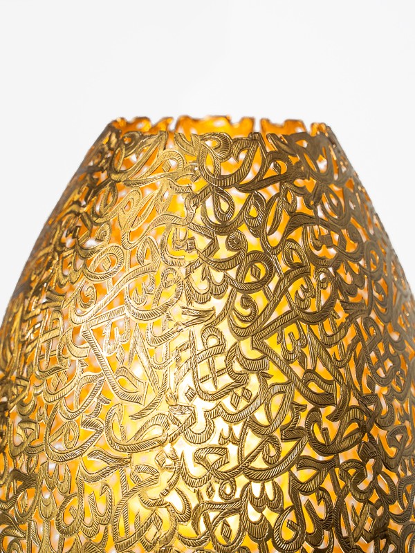 Marrakech Palace apresenta uma luminária de mesa que exemplifica o domínio da filigrana de latão. A luminária projeta padrões encantadores em suas paredes, criando uma atmosfera aconchegante e convidativa.